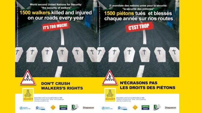 Éducation des automobilistes au respect des droits des piétons. SECUROUTE a participé à ce second événements mondial pour sensibiliser sur les droits des piétons sur la route.